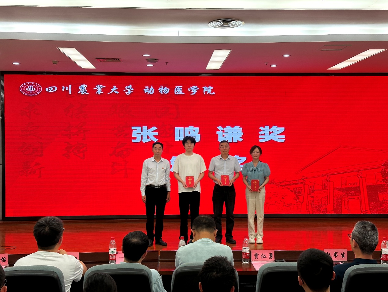 值得一提的是,由学院已故老教师张鸣谦先生的家属——硅酸盐高级工程师张淑真女士和中科院院士张淑仪女士设立的“张鸣谦奖”首次在动物医学院颁奖台上惊艳亮相,优秀本科生李祝伟、博士研究生王梦莹、优秀青年教师刘马峰教授获此殊荣,每人荣获10000元奖金,获奖教师刘马峰教授满怀深情地表示:“必将把张鸣谦先生的精神书写在祖国大地上,传承先生的积淀与精神,站在先生肩膀上进一步创新,为学院学科发展贡献力量”,随后他还汇报了团队的最新科研成果,以实实在在的行动有力地证明了传承的力量。